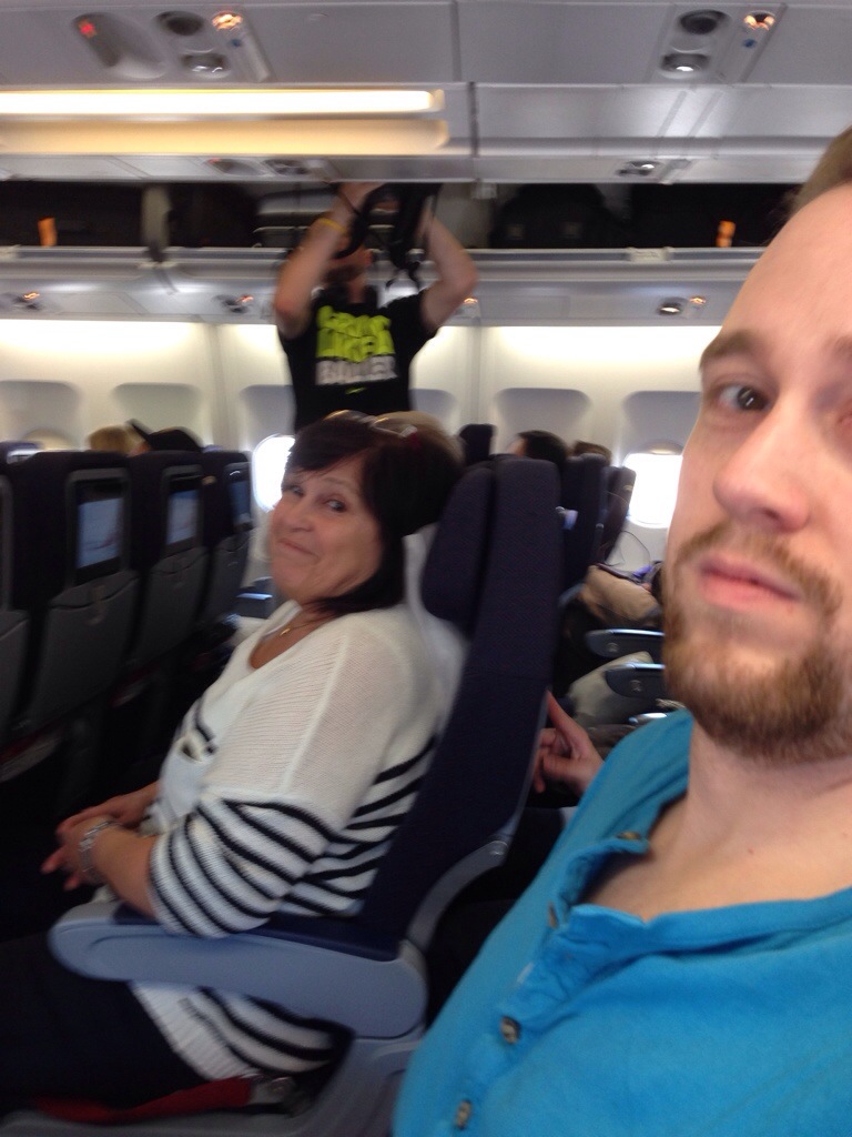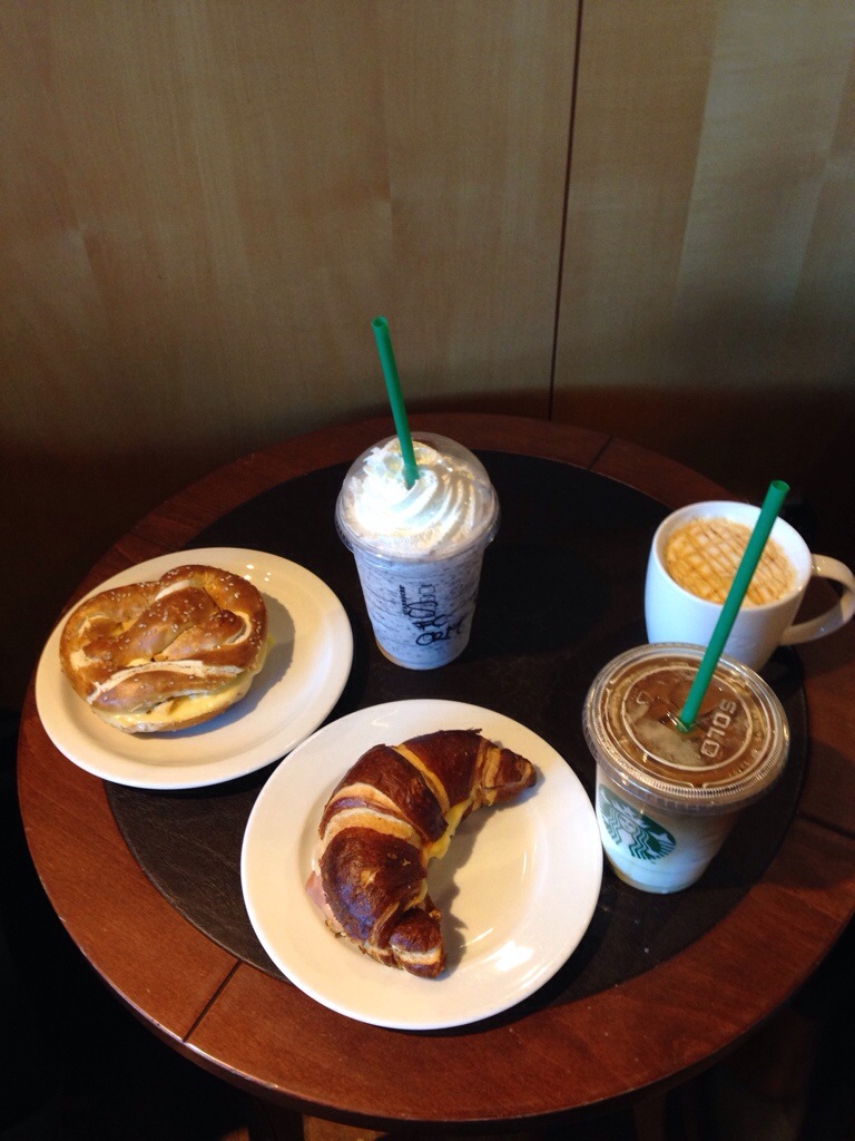 … die Wartezeit bei Starbucks rumkriegen. Koffer sind eingecheckt.