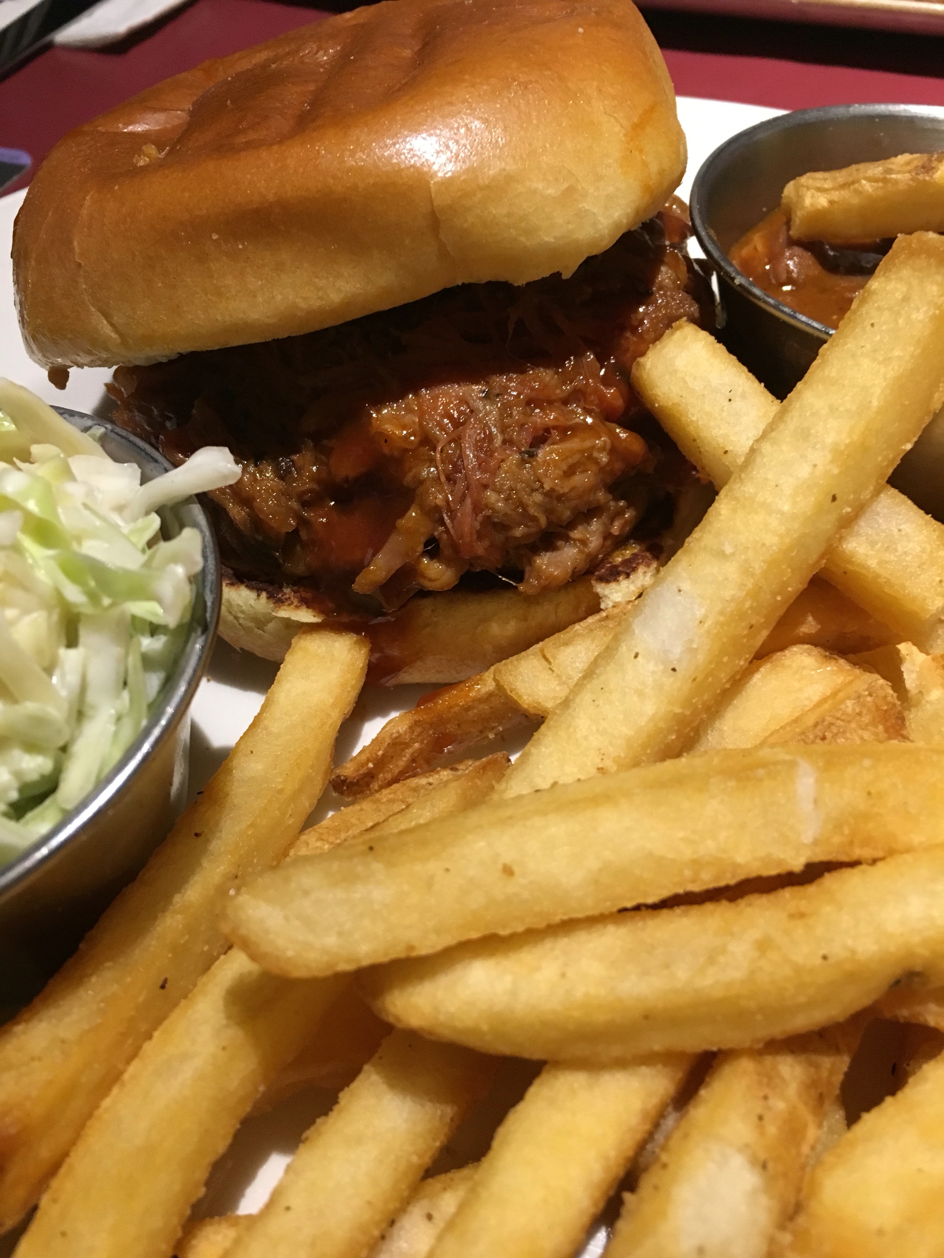 Pulled Pork für Josh und mich und flatbread für Susanne. Sehr lecker ! Jetzt suchen wir einen Kuchen – aber irgendwo draußen und gehen zurück zum Hotel. Josh blasen verarzten 😉