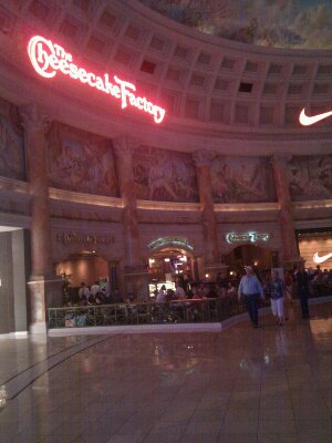 Cheesecake factory stand generell auf dem Plan, nun sind wir zufällig drüber gestolpert, in den caesar palace forum Shops, hunger ist auch genug da, alao fur mich ein burger, Überraschung, fur jan nachos. Danach logischerweise cheesecake, der laden heisst ja nicht umsonst so.