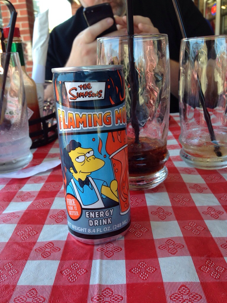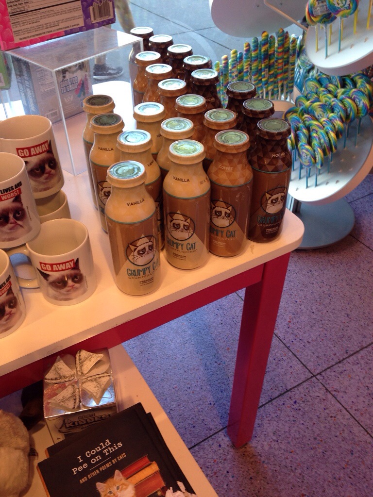 Ich hab mir nen grumpy Cat Schlüsselanhänger gekauft und einen Flaming moe Energy Drink.