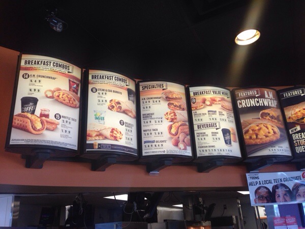 – essen: Taco bell, Dennys