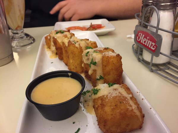 Jan und ich müssen ja am burgerbildungsauftrag dran bleiben. Also sind wir zu i <3 burger und hatten drei bacon Cheeseburger Slider und frittierte macncheese Quader. Dazu ein Karamell Popcorn Shake. Yummy aber nicht oberyummy 🙂 Grüße Dennis