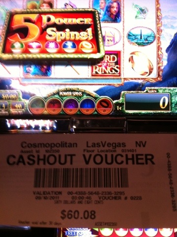 Die letzten 2 Stunden haben wir gegenüber im cosmopolitan verbracht und am Lord of the Rings Slot gespielt. 40 Dollar rein, 60 raus 🙂 ist also noch was für die slots am Flughafen übrig 😉